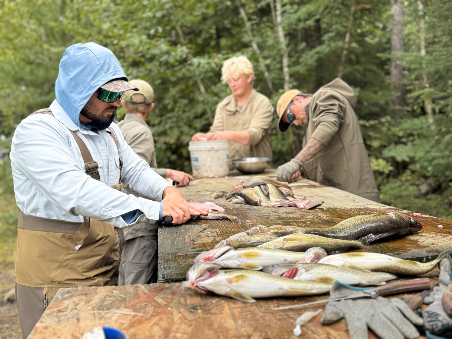 Shore lunch is prepared daily out on the lake, featuring 2 flavours which change each day. Walleye are prepared over 24 different ways and are always caught same day by guest eating the fish.